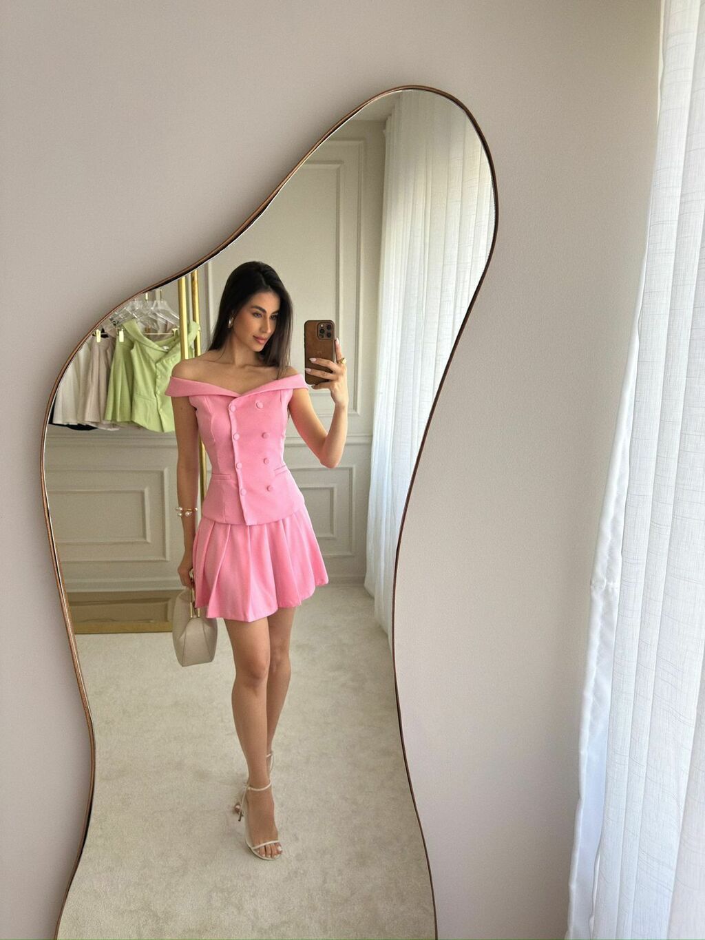 • Esse produto acompanha a blusa ombro a ombro e a saia plissada.